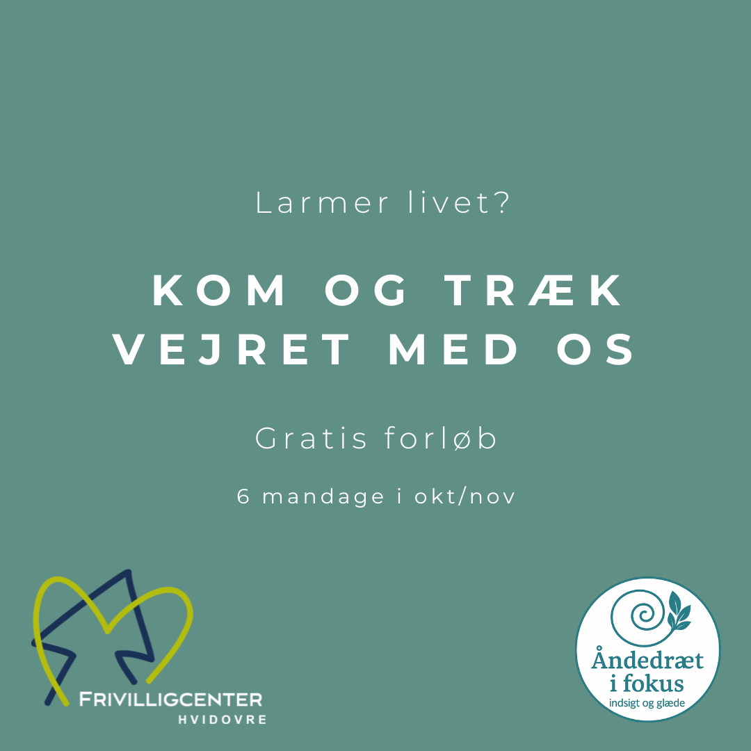 Frivilligcenter Hvidovre og Åndedræt i fokus inviterer til et gratis forløb i åndedrætsteknikker, hvor du i trygge omgivelser kan lære, hvordan du med enkle teknikker kan finde mere ro i krop og sind.